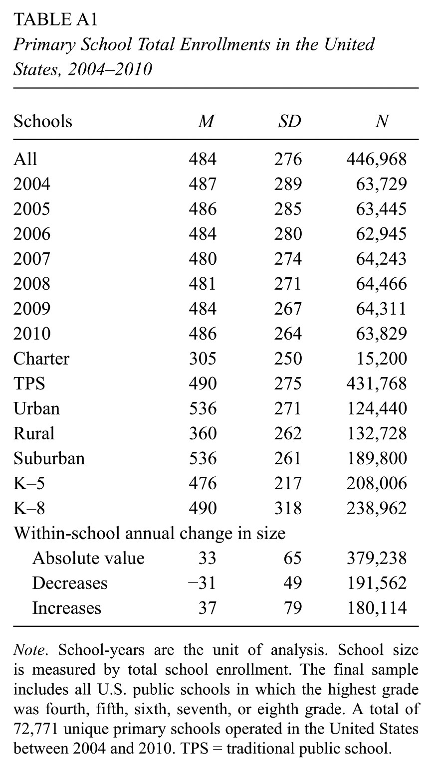 ‘Today, the average U.S. primary school enrolls about 480 students and experiences annual enrollment fluctuations of about 30 students.’ *